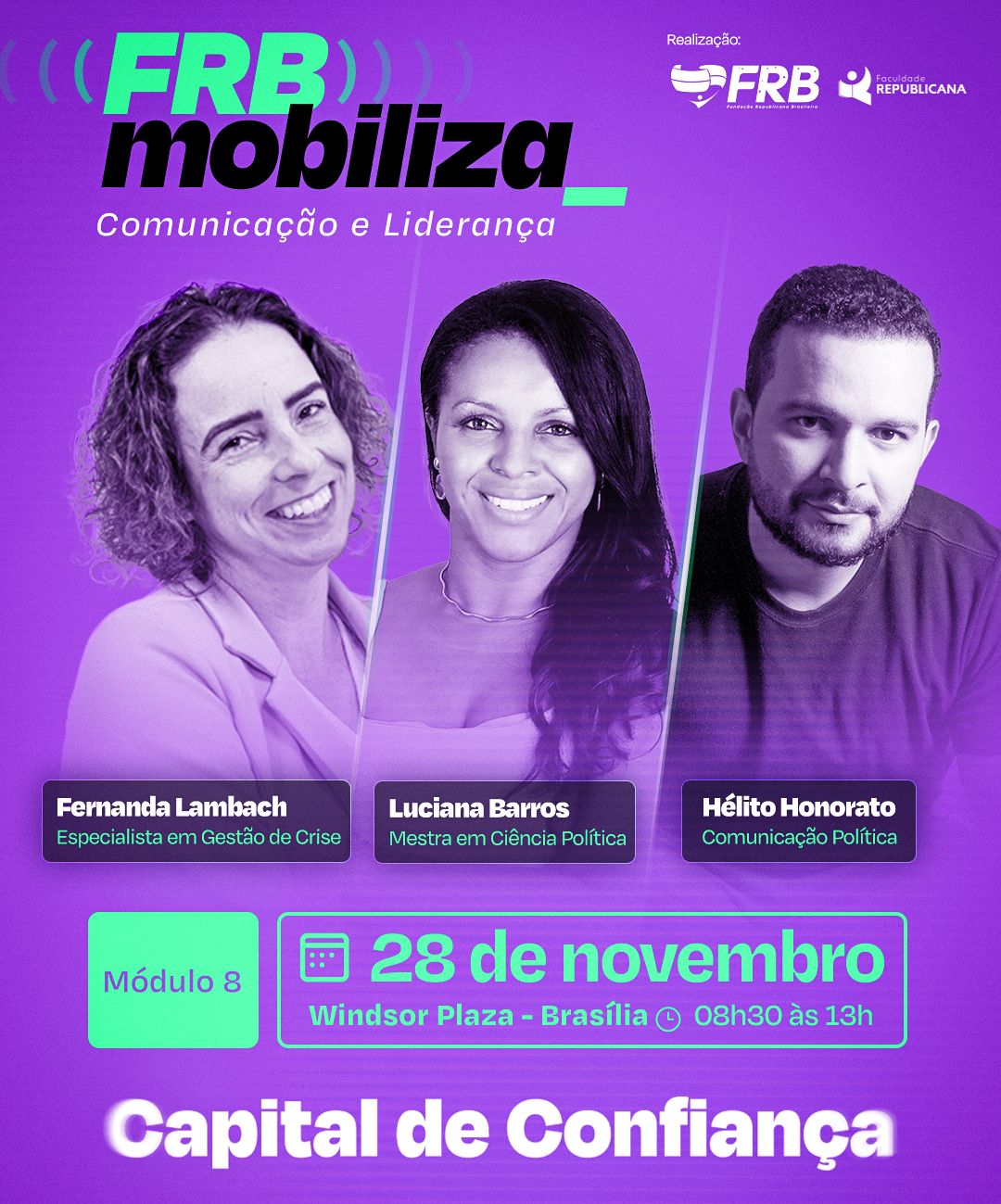 O FRB MOBILIZA: Comunicação e Liderança é direcionado a parlamentares, assessores de comunicação e coordenadores de campanha que desejam aprimorar sua atuação política.