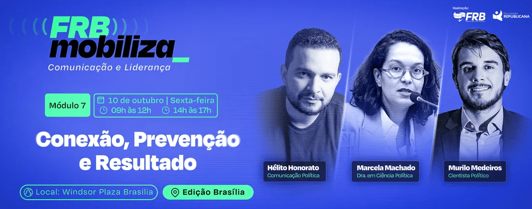 As eleições de 2026 estão chegando, e é preciso que os nossos parlamentares, assessores e coordenadores de campanha estejam capacitados para a mobilização de base junto das novas gerações. O FRB Mobiliza é um evento gratuito da FRB e a oportunidade ideal para esse aprendizado.