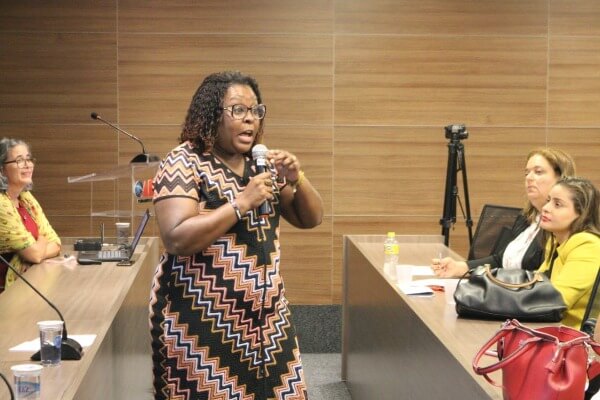 A professora, vice-presidente do Instituto Maria da Penha, e cientista política Regina Célia, falou da importância do tema da palestra.