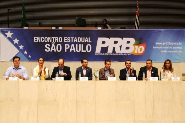 Presidente nacional do PRB, Marcos Pereira, governador Geraldo Alckmin e ex-deputado Celso Russomanno confirmaram presença
