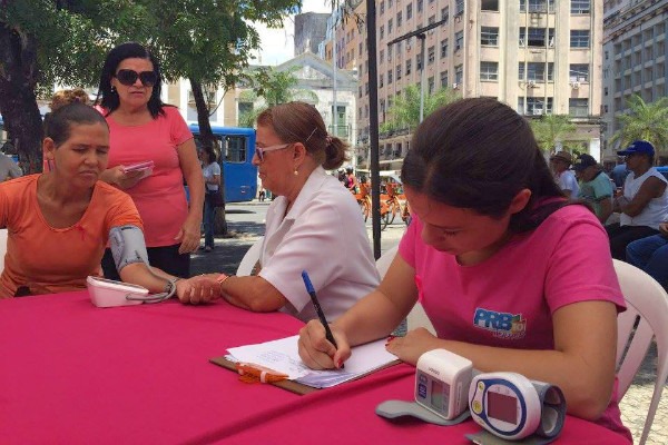Rosa Bravo coordenou uma ação social relativa à campanha Outubro Rosa, na Praça dos Bandeirantes,